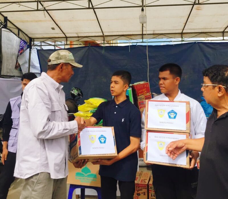 “Jika kita melihat dari ukuran bantuan ini memang tidak besar, namun inilah wujud implementasi nyata dari rasa empati, kepedulian, dan tanggung jawab moral keluarga besar SMA Negeri 9 Pekanbaru kepada saudara-saudara kita yang sedang tertimpa musibah,” ungkap Al