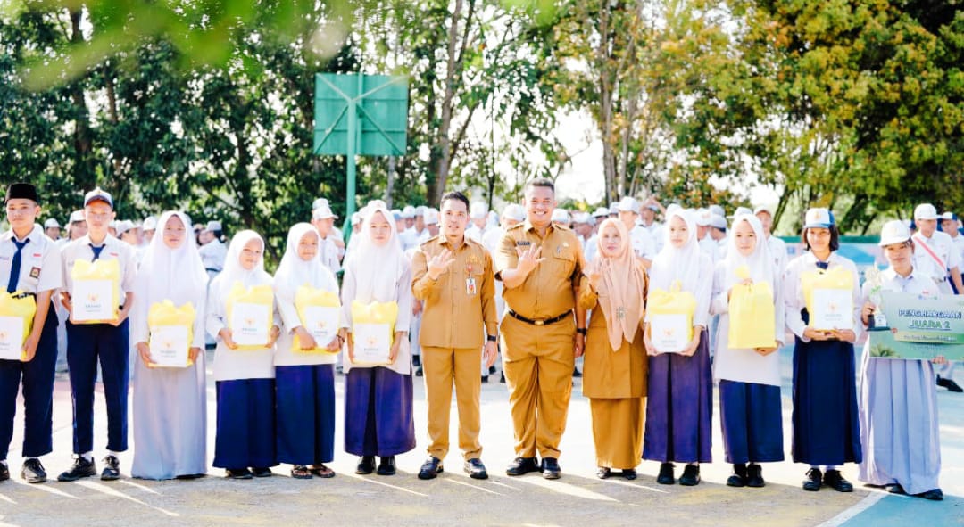 Kepala Dinas Pendidikan Provinsi Riau juga memberikan bantuan alat tulis gratis kepada 10 orang siswa yang kurang mampu.