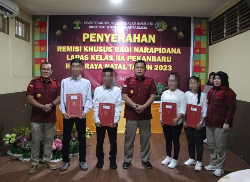Pekanbaru, Baranewsriau.com – Sukacita Natal membawa kebahagiaan bagi banyak orang, tak terkecuali bagi narapidana yang sedang menjalani hukuman di Riau. Sebanyak 942 narapidana yang beragama Nasrani mendapatkan Remisi Khusus (RK) atau pengurangan masa hukuman pada perayaan hari besar keagamaan. Dari jumlah tersebut, sebanyak 936 narapidana memperoleh RK I atau pengurangan masa hukuman sebahagian dan 6 orang lagi mendapatkan RK II atau dinyatakan bebas setelah masa hukumannya dikurangi remisi. Penyerahan secara simbolis remisi Natal di Riau dipusatkan di Lembaga Pemasyarakatan Kelas IIA Pekanbaru dan turut dihadiri perwakilan narapidana Lapas Perempuan Pekanbaru, Senin (25/12/2023).