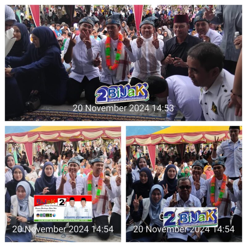 Rohil – baranews,—– Menjadi hari bersejarah bagi masyarakat Rokan Hilir. Pasangan calon Bupati dan Wakil Bupati, H. Bistamam dan Jhony Charles, yang dikenal dengan jargon “Bijak,” menggelar kampanye dalam bentuk Tabligh Akbar yang menggugah hati. Acara ini berlangsung khidmat di Pujasera, Jalan Pulau Baru, Kelurahan Bagan Barat, Kecamatan Bangko.