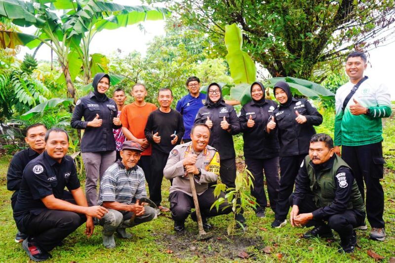 Tanam Pohon, Humas Polda Riau ‘Sulap’ Pemukiman Transmigran Jadi Kebun Buah