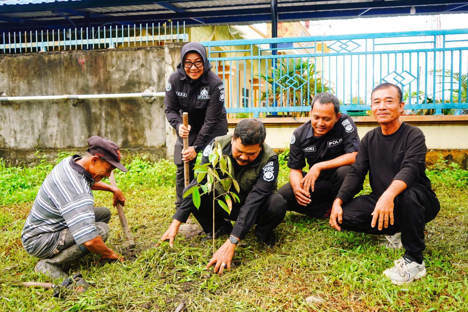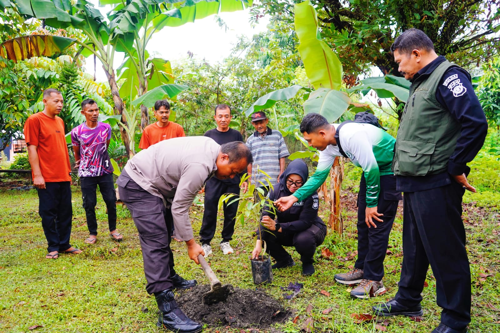 Tanam Pohon, Humas Polda Riau ‘Sulap’ Pemukiman Transmigran Jadi Kebun Buah