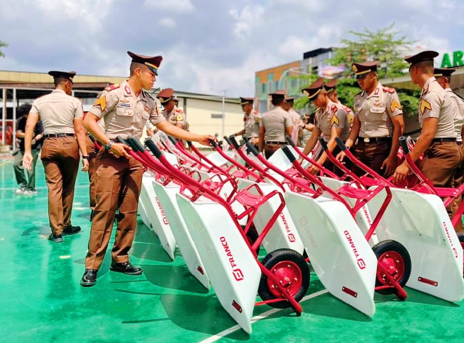Kegiatan bakti sosial tersebut diwujudkan melalui penyerahan bantuan berupa angkong atau gerobak sebanyak 63 unit. Bantuan diserahkan secara langsung di Mapolda Riau. Rabu (24/12/2025)