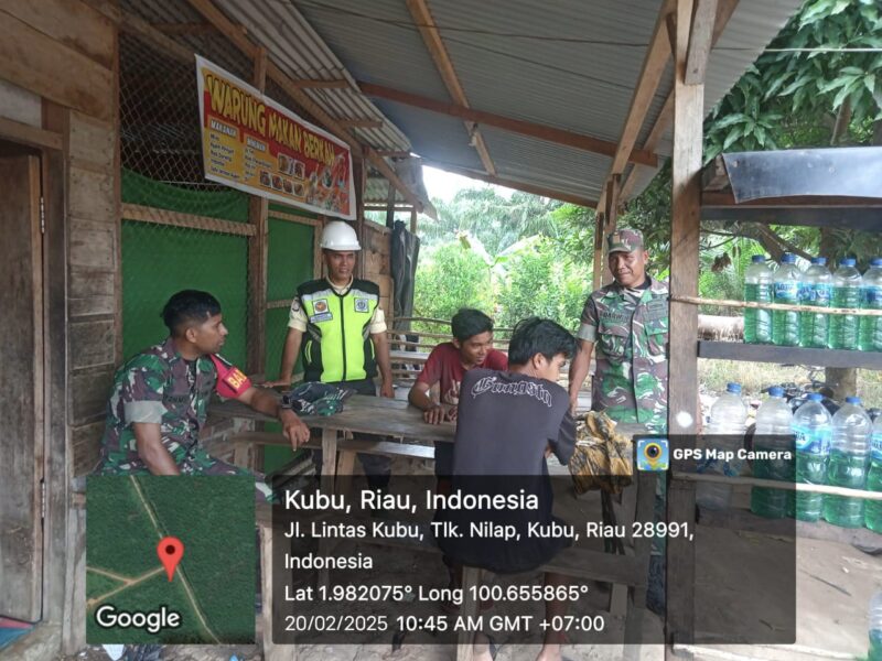 Mengantisifasi adanya gangguan keamanan yang terjadi diareal Objek Vital Nasional PT.Pertamina Hulu Rokan (PHR) di Sektor V Wilayah Koramil 04/Kubu,Petugas melakukan kegiatan Patroli dan Sosialisasi.