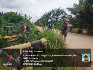 Untuk menjaga situasi keamanan yang lebih kondusif, Personil Koramil 04/Kubu bersama Petugas Scurity melaksanakan kegiatan  patroli penguatan Binter SKK Migas PT PHR (Pertamina Hulu Rokan) Sektor 5 Koramil 0321-04/Kubu, Pada Hari Sabtu 03 Mei 2025.