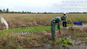 Sebagai upaya meningkatkan tarap ekonomi bagi Warga masyarakat di Desa Binaan Koramil 04/Kubu melalui Babinsa Kopda Darwin Manurung memberikan bantuan penanaman Padi kepada pak Ramli Warga RT 02/ RW 04 Kepenghuluan Sungai Panjipanji Kecamatan Kubu Babussalam Kabupaten Rokan Hilir pada Jum,at 10/10-2025.