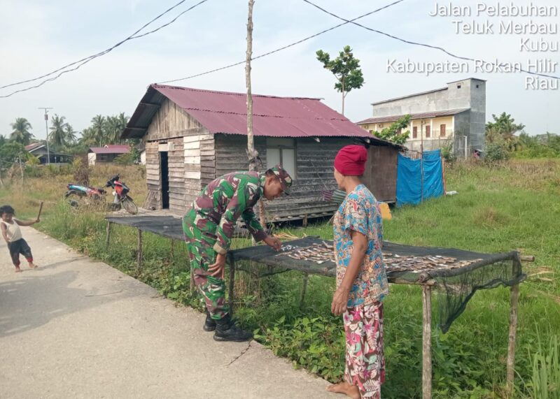 Untuk memberi edukasi dan semangat kepada para pengerjaan Ikan Asin,Personil Koramil 04/Kubu Serda Erik Handayani melakukan pendampingan kepada ibu Sofiah Sala seorang Pengerajin Ikan Asin warga RT 003 /RW 002 Kelurahan Teluk Merbau Kecamatan Kubu pada Senin 24/2-2025.