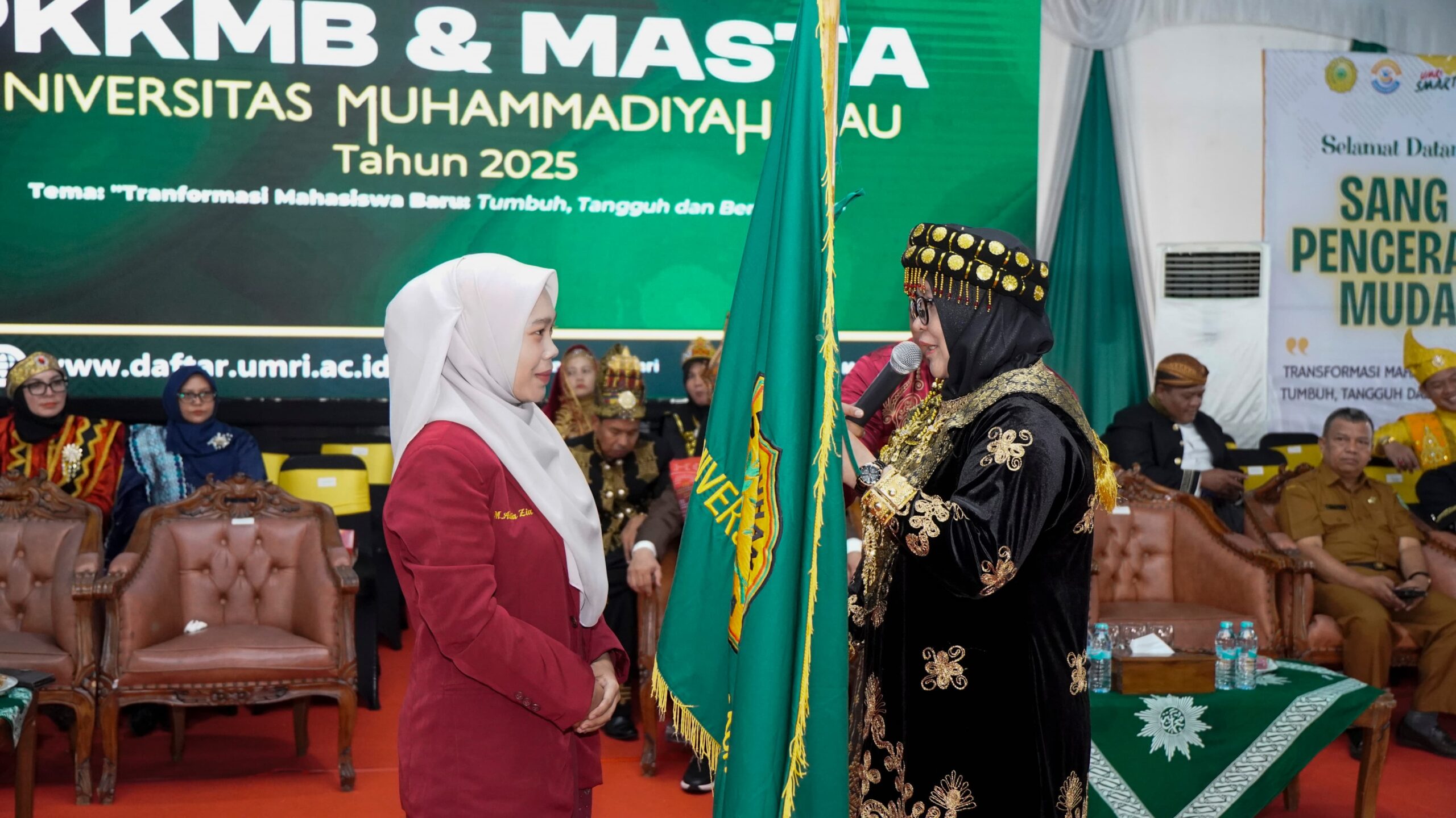 Wakil Rektor 1 UMR, Dr. Wirdari Irma, S.Pd., secara simbolis menyerahkan mahasiswa baru kepada pengurus DPD IMM Riau.
