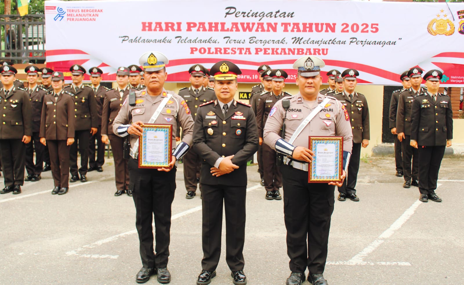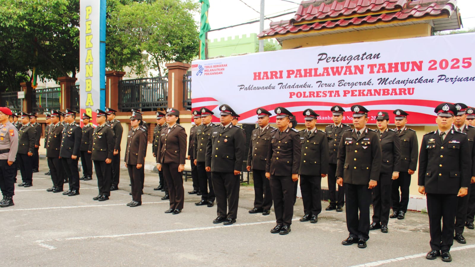 Pekanbaru, baranewsriau.com – Polresta Pekanbaru melaksanakan Upacara Bendera Peringatan Hari Pahlawan Tahun 2025 yang berlangsung di halaman Mapolresta Pekanbaru pada pukul 08.00 WIB. Upacara mengusung tema nasional “Pahlawanku Teladanku, Terus Bergerak, Melanjutkan Perjuangan.” Senin (10/11/2025).